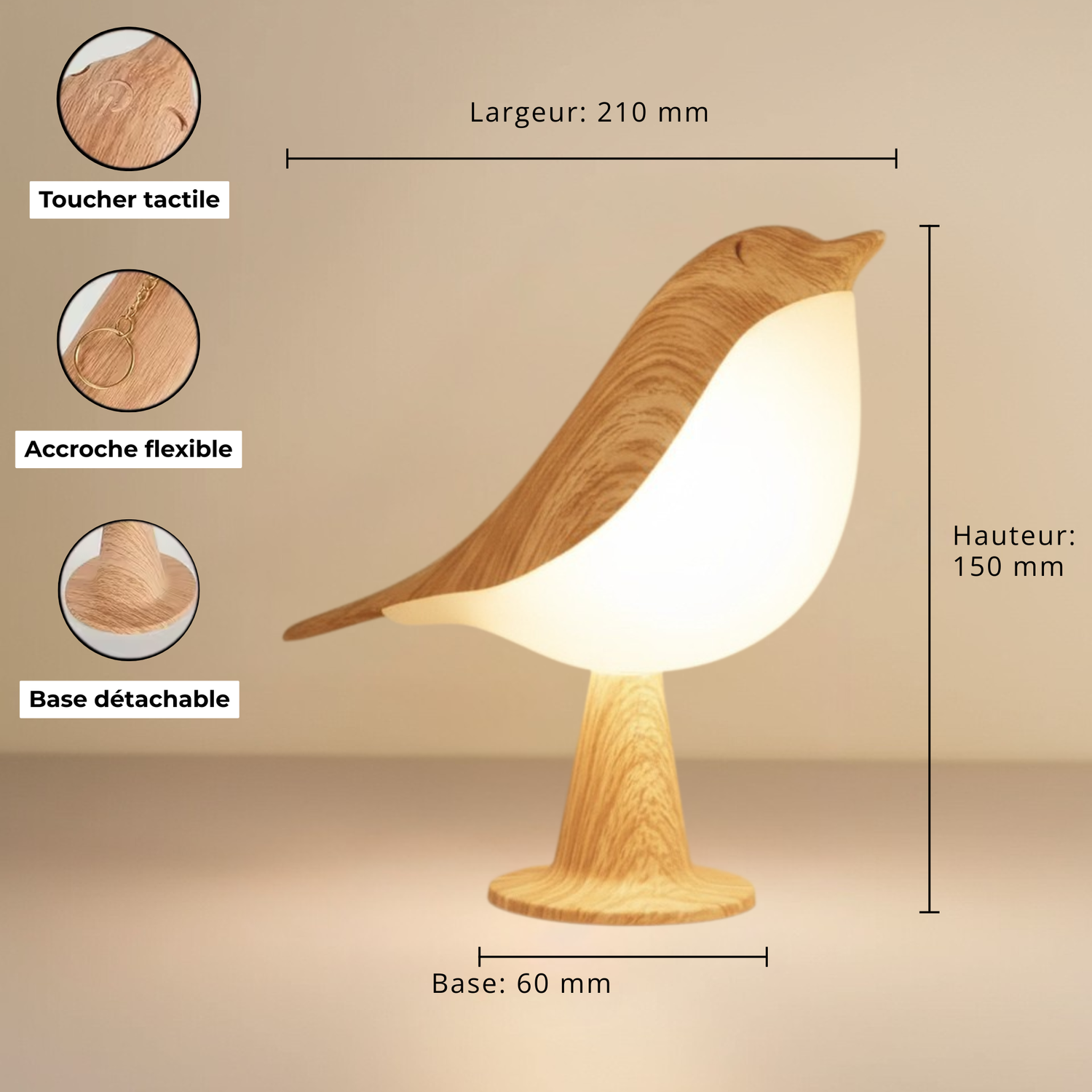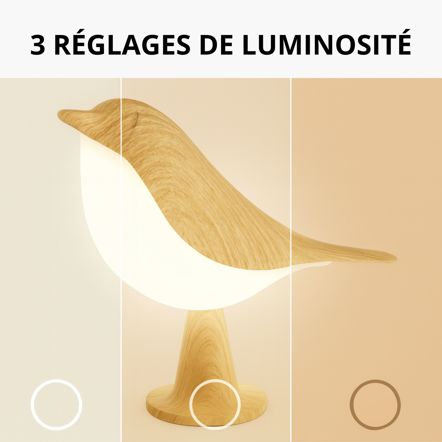 - Éclairage doux et réglable : 3 intensités au choix (tactile sur la tête de l’oiseau), lumière blanc chaud 3500K idéale pour lire, se détendre ou comme veilleuse.